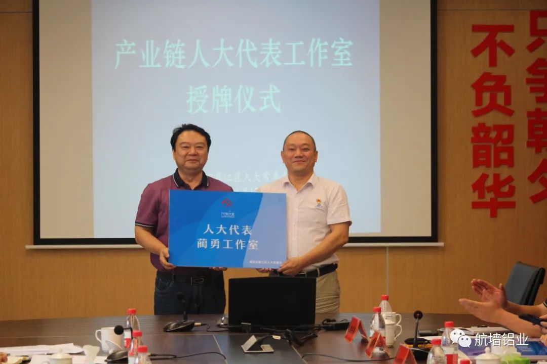 綦江區產業鏈人大代表工作室授牌在航墻鋁業舉行6月12日,綦江區產業鏈人大代表工作室授牌儀式在重慶航墻鋁業股份有限公司舉行,為首批6個產業鏈人大代表工作室授牌。區人大常委會主任母明江,區人大常委會副主任褚洪春、肖敏參加。公司董事長作為綦江區人大代表,被授予人大代表藺勇工作室。儀式前,與會領導、市區人大代表等實地考察了重慶航墻鋁業股份有限公司產業發展情況。在會上,母明江指出,要充分發揮代表作用,圍繞全