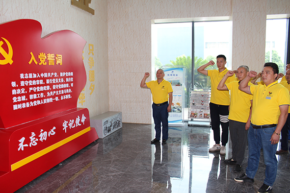 之后,三名新黨員在黨旗下莊嚴宣誓,全體黨員重溫入黨誓詞。