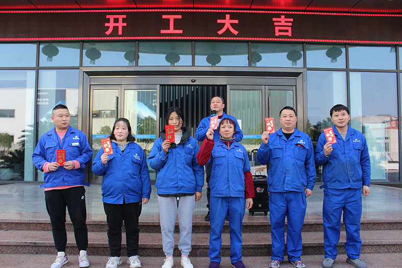 祝福我們的公司在2023年生意興隆,財(cái)源滾滾,突飛猛進(jìn),兔年吉祥如意!11:28時(shí)開工典禮正式開始,董事長給大家發(fā)放了開工紅包,祝愿所有的航墻鋁業(yè)家人在2023年里有健康快樂的生活,有幸福美滿的家庭!