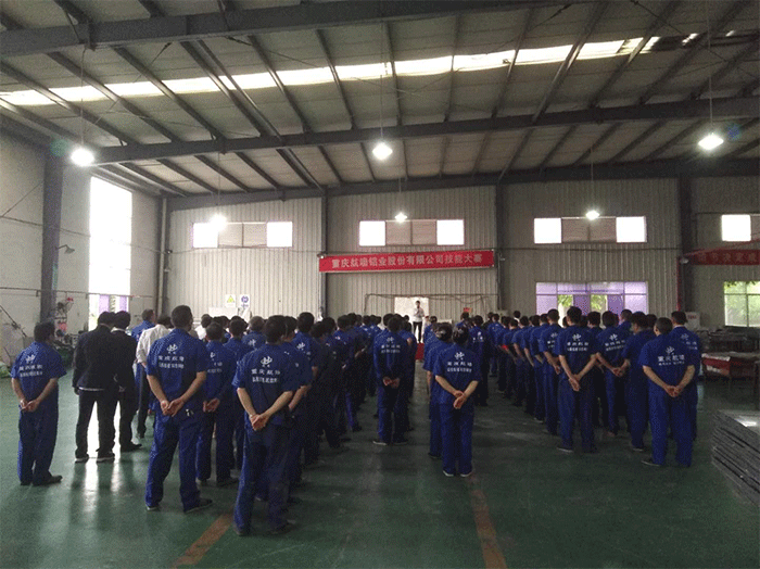 2018年5月2日至5月3日, 重慶航墻鋁業股份有限公司工會堅持以基層班組為著力點,以一線職工為主體,以打造“品質航墻”和“節能降耗、高效優質”為主要目標,在公司開展了“開展技能大賽,爭當團隊第一”的勞動競賽。公司“鈑金”車間和噴涂車間10個班組,128人參加。比賽的項目有:開料、劃線、折彎、焊接、組裝、打磨、前處理、掛件、噴涂、包裝十個工序。