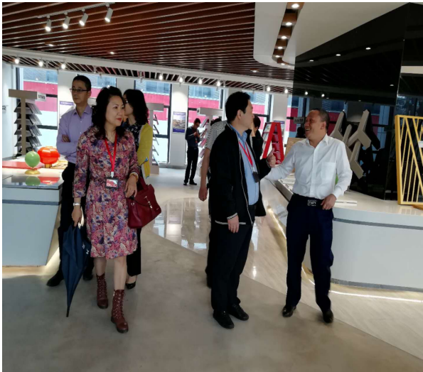 領(lǐng)導(dǎo)們參觀了展廳的展品,對(duì)產(chǎn)品的原料來(lái)源、生產(chǎn)工藝、技術(shù)要求、用途、與傳統(tǒng)外墻磚相比較的優(yōu)勢(shì)等都做了詳細(xì)的了解。