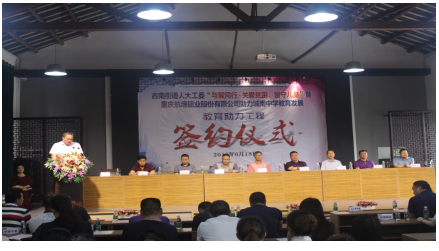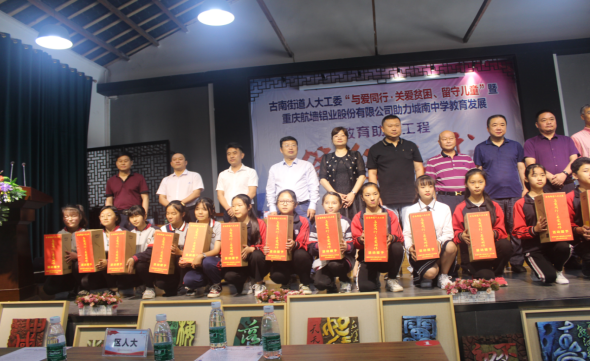 6月18日,在古南街道人大工委“與愛同行﹒關(guān)愛貧困、留守兒童”暨重慶航墻鋁業(yè)股份有限公司助力城南中學(xué)教育發(fā)展教育助力工程簽約儀式上,重慶航墻鋁業(yè)股份公司助力綦江城南中學(xué)教育發(fā)展正式簽約,董事長(zhǎng)藺勇榮幸受聘綦江城南中學(xué)“名譽(yù)校長(zhǎng)”職務(wù)。