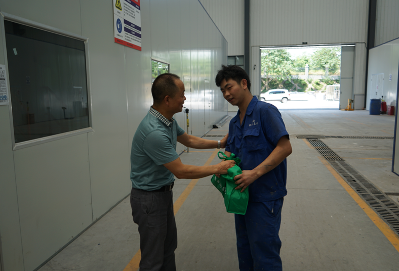 無論是鈑金車間的打磨崗位,還是噴涂車間的噴房,無論是有粉塵的崗位還是溫度高達40多度的班組,劉洪兵主任等領導,都將清涼禮物親自送到每個職工的手上,并親切地囑咐他們注意防暑,多喝水,保重身體;還鼓勵他們熱愛公司,努力工作。