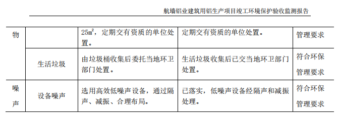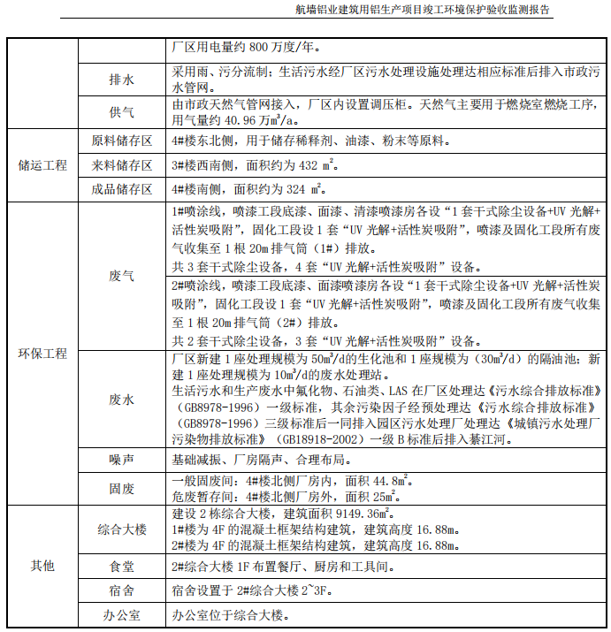 根據(jù)《航墻鋁業(yè)建筑用鋁生產(chǎn)項目環(huán)境影響報告書》,結(jié)合實際工程建設情