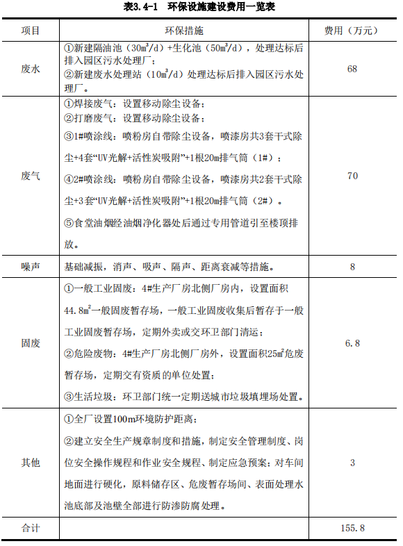 項目總投資26800萬元,其中環(huán)保投資155.8萬元,占總投資的0.43%。環(huán)保