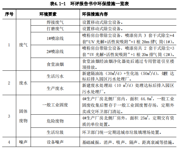 氣、廢水、固體廢物、噪聲,具體見表4.1-1。
