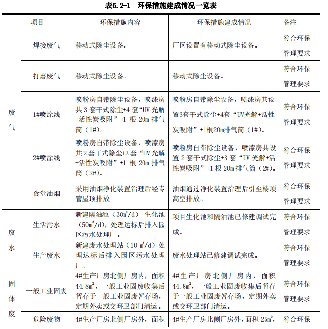 (2)廢氣:焊接煙塵、打磨粉塵車間無組織排放。噴粉廢氣采用自帶粉塵設