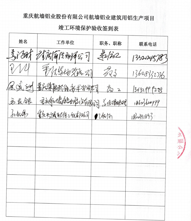 建設單位:重慶航墻鋁業(yè)股份有限公司